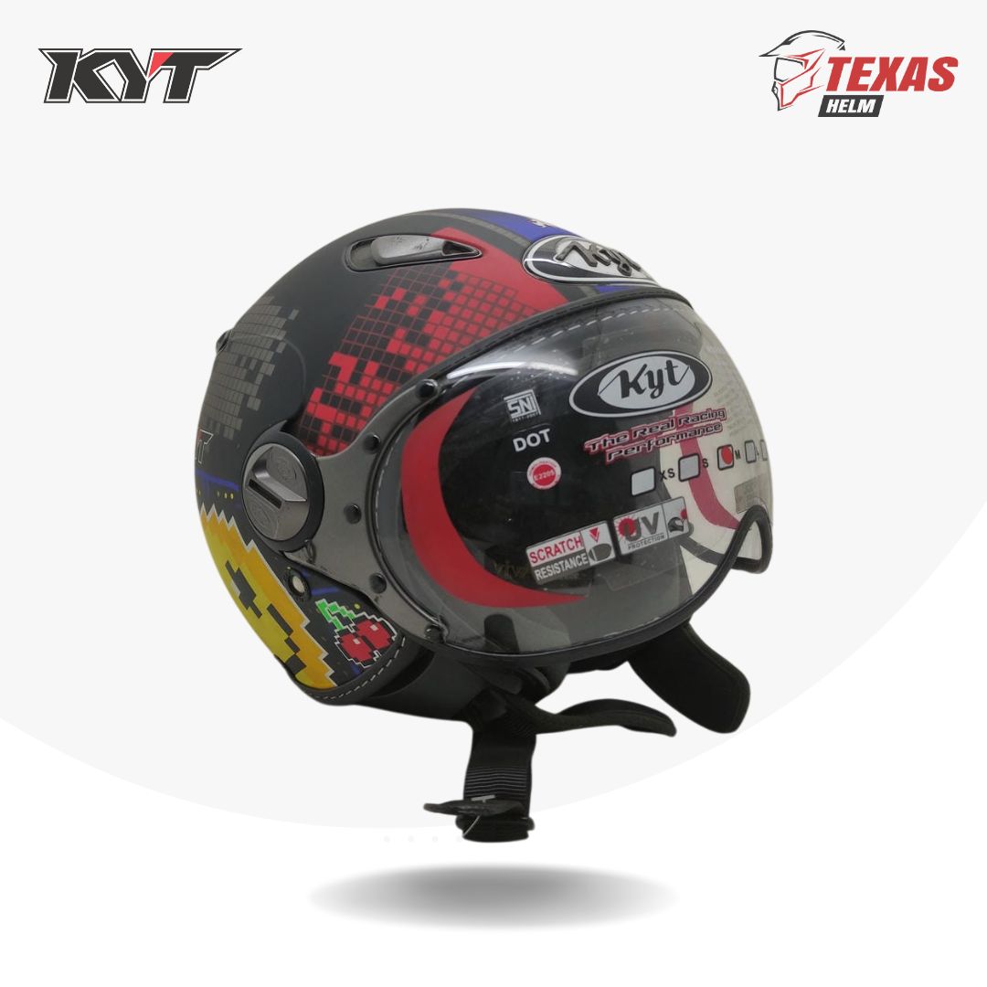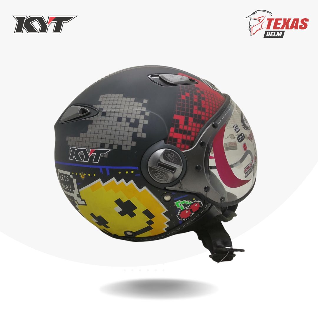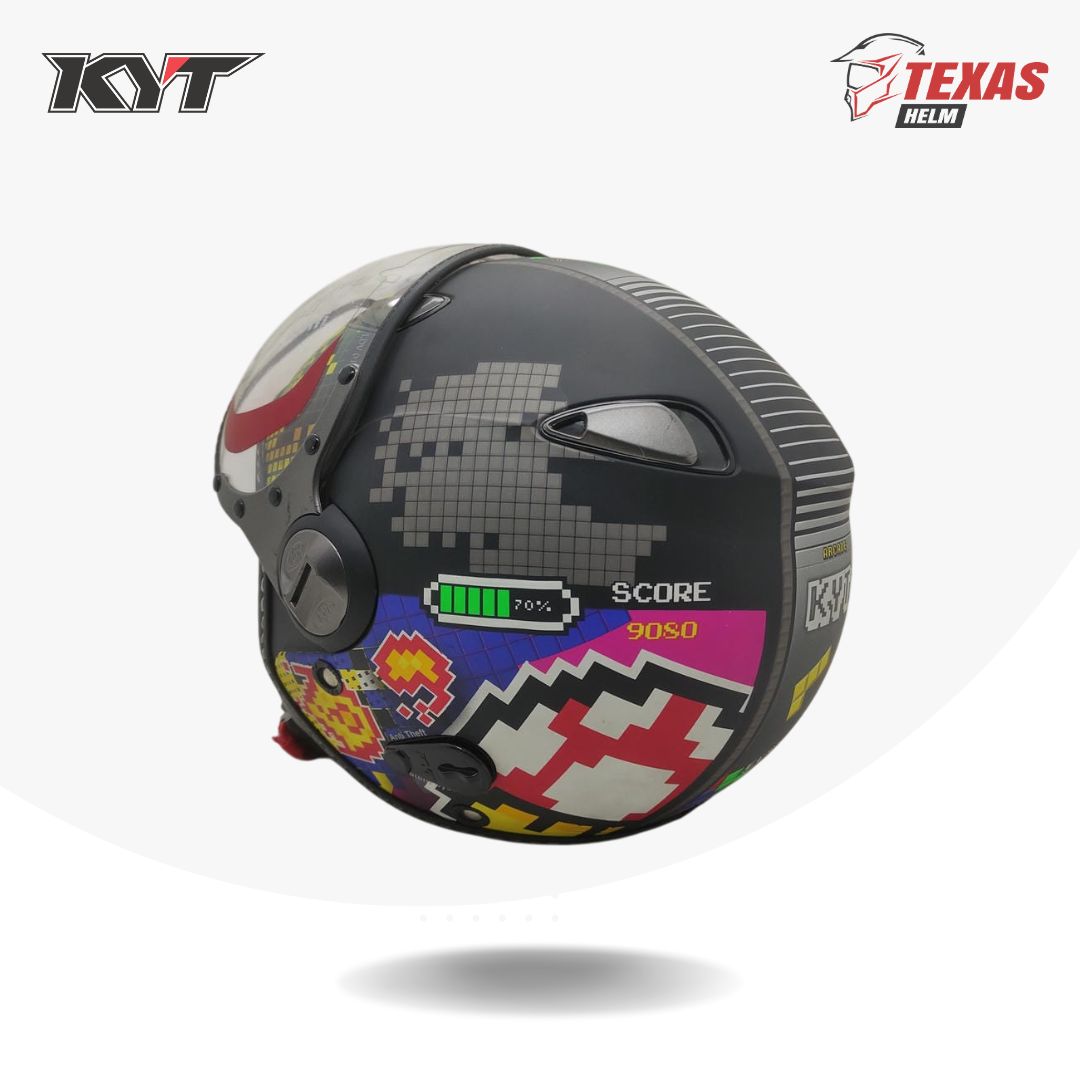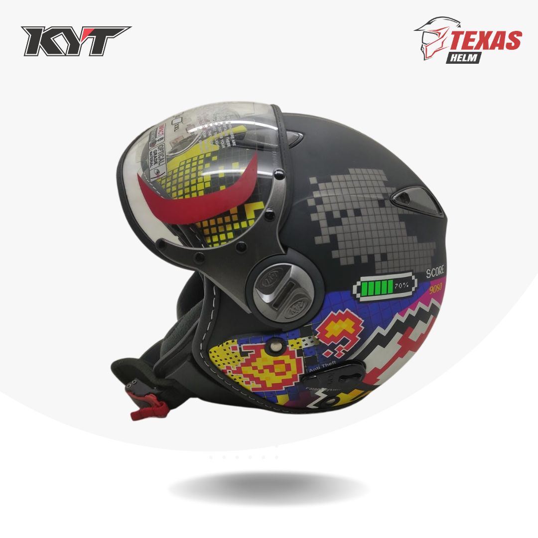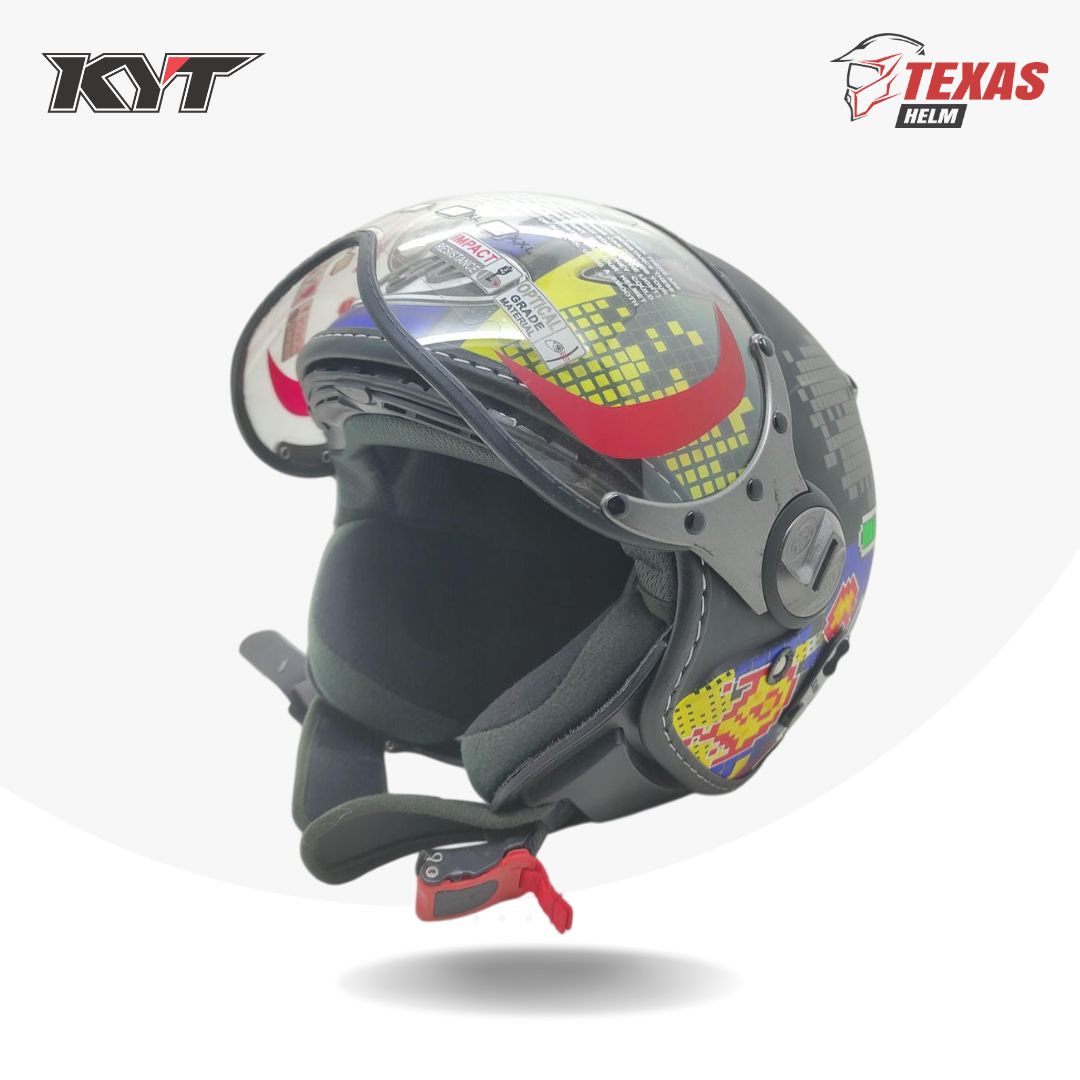 Detail pada helm ini juga menjadi nilai tambah tersendiri. Mulai dari grafis “Let’s Play”, ikon baterai, hingga elemen pixel yang tersebar di seluruh permukaan membuat tampilannya semakin standout. Finishing doff memberikan kesan halus dan tidak terlalu mencolok di bawah cahaya, namun tetap terlihat premium. KYT Elsico Motif #7 Black/Yellow/Red Doff (Matte) sangat cocok untuk kamu yang ingin memadukan gaya, kenyamanan, dan karakter unik dalam satu helm.
